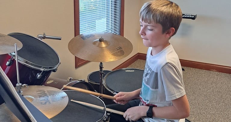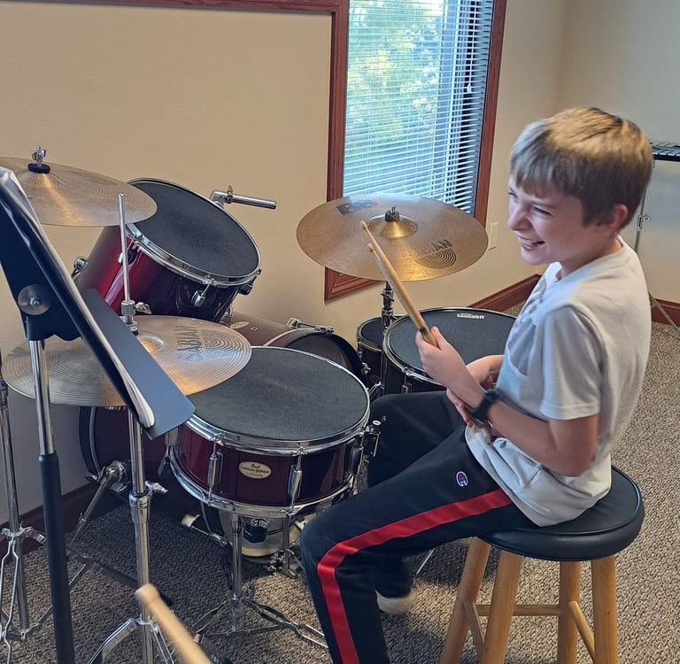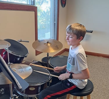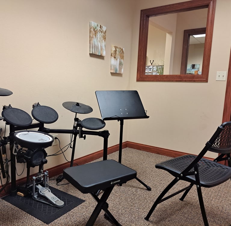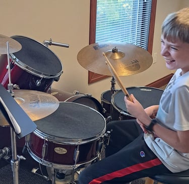 We also offer Percussion Lessons, which is a wonderful addition to any school band program, rock band, or worship band.